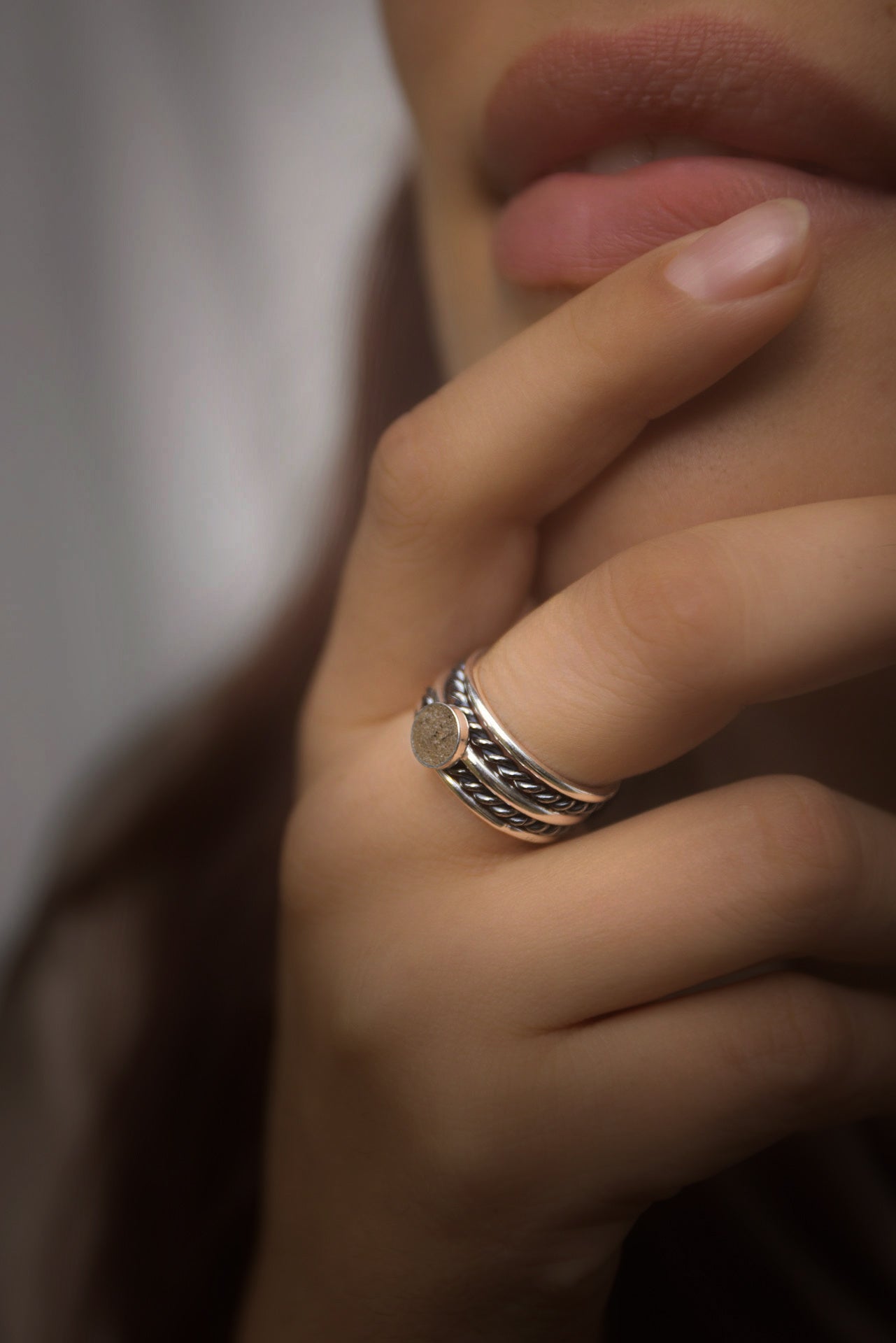 Minimalistische sieraden ingelegd met zand van Terschelling.