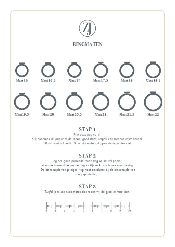Kom je er niet helemaal uit? Je kunt bij ons ook een ringsizer bestellen deze kost 5,00 euro en dit bedrag krijg je als korting bij je eerstvolgende bestelling :)